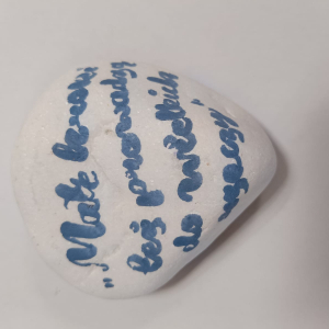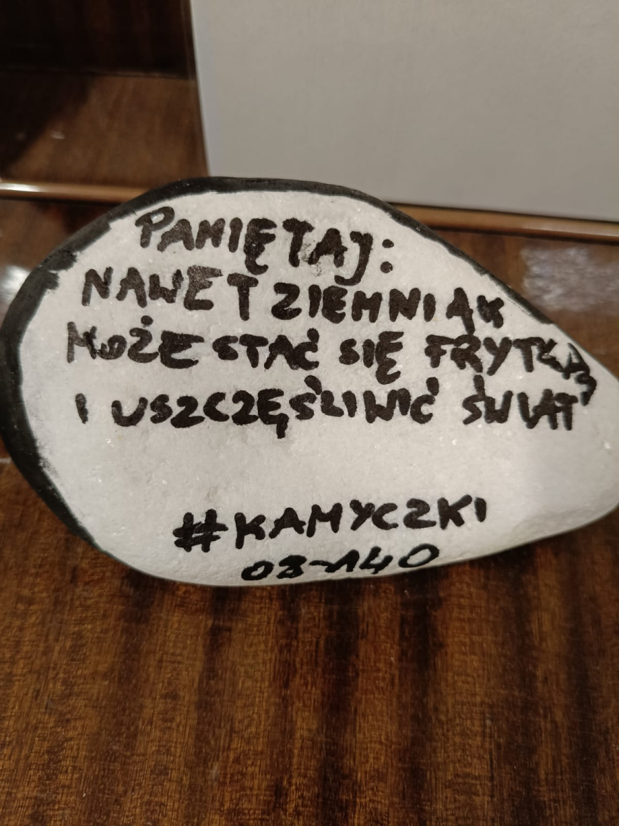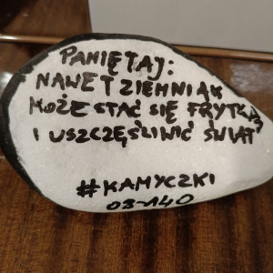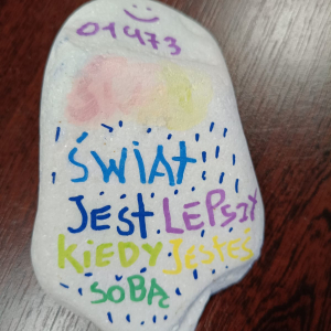 W ostatniej części dnia dzieci malowały kamyczki, które będą nam potrzebne do wykonania kamyczkowej tajnej misji. Oprócz pięknych malowideł znalazły się na nich sentencje, których zadaniem będzie podnieść na duchu, rozweselić lub pocieszyć znalazcę kamyczka. Już wkrótce szukajcie ich na mordzkich dróżkach oraz w innych malowniczych miejscach w naszej okolicy.
