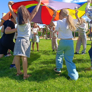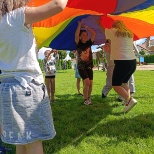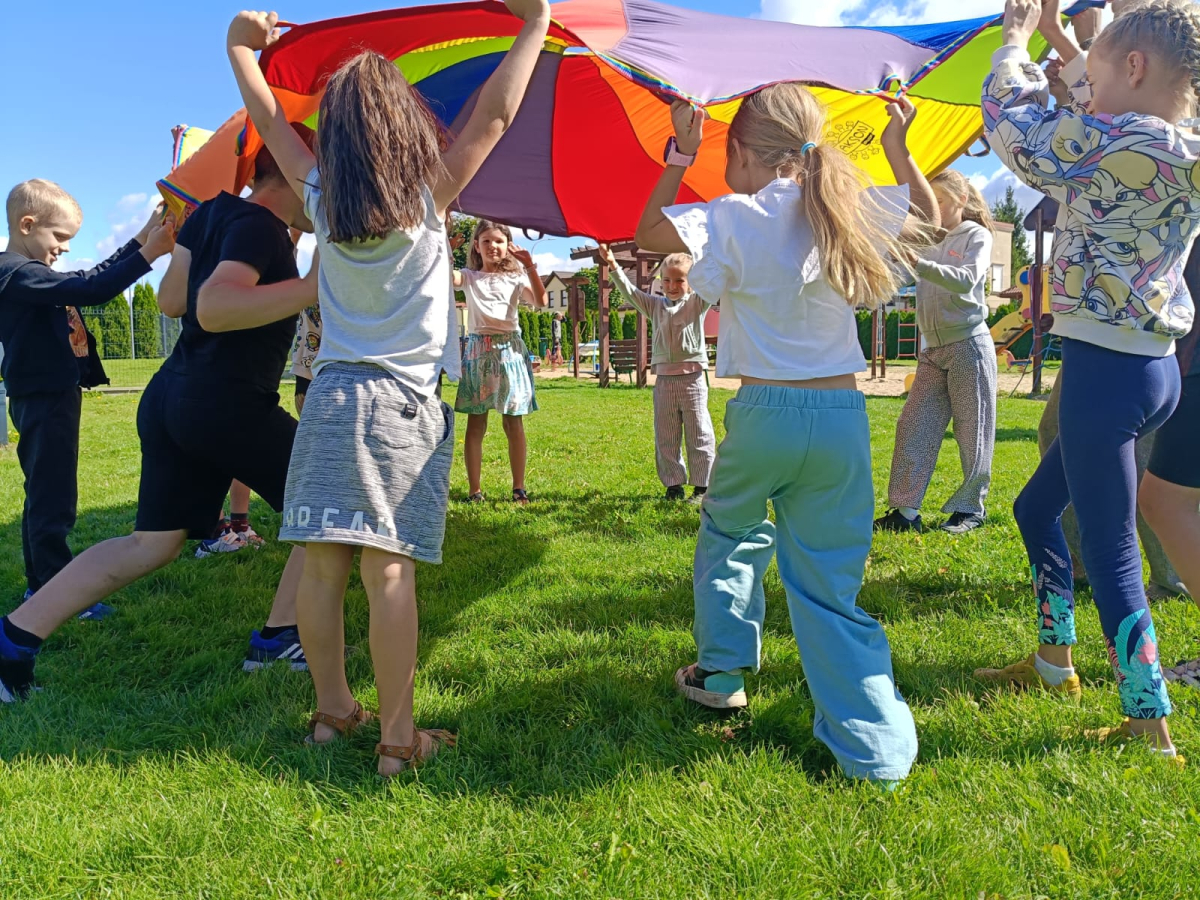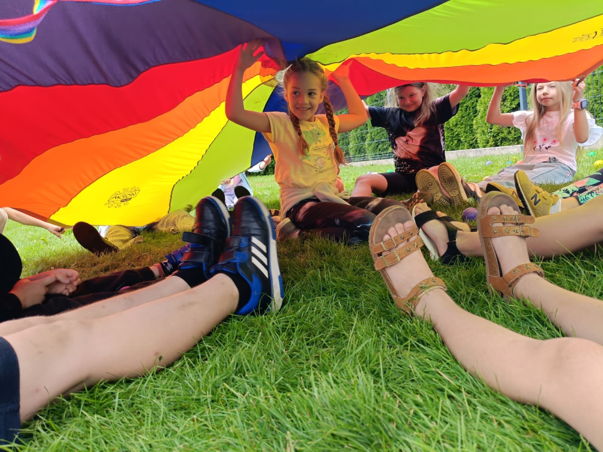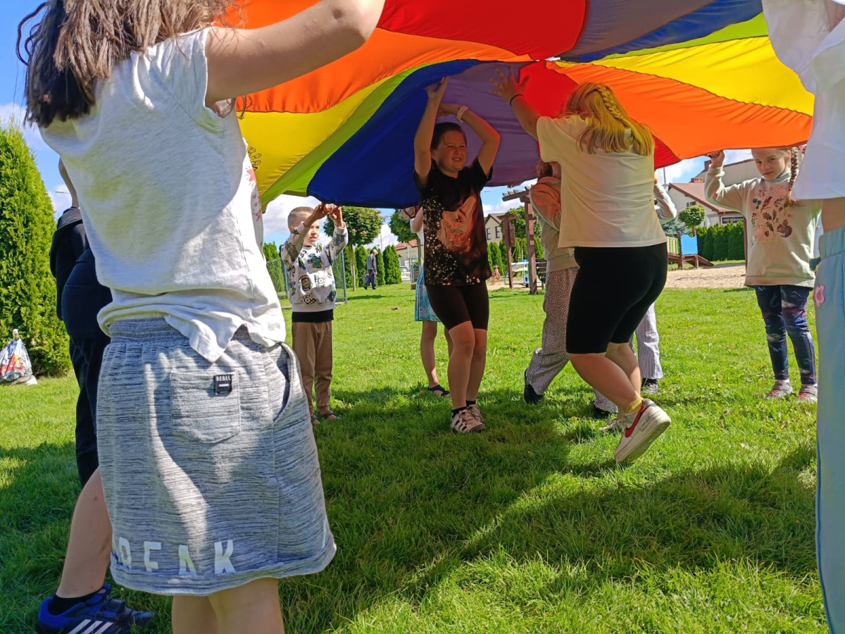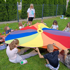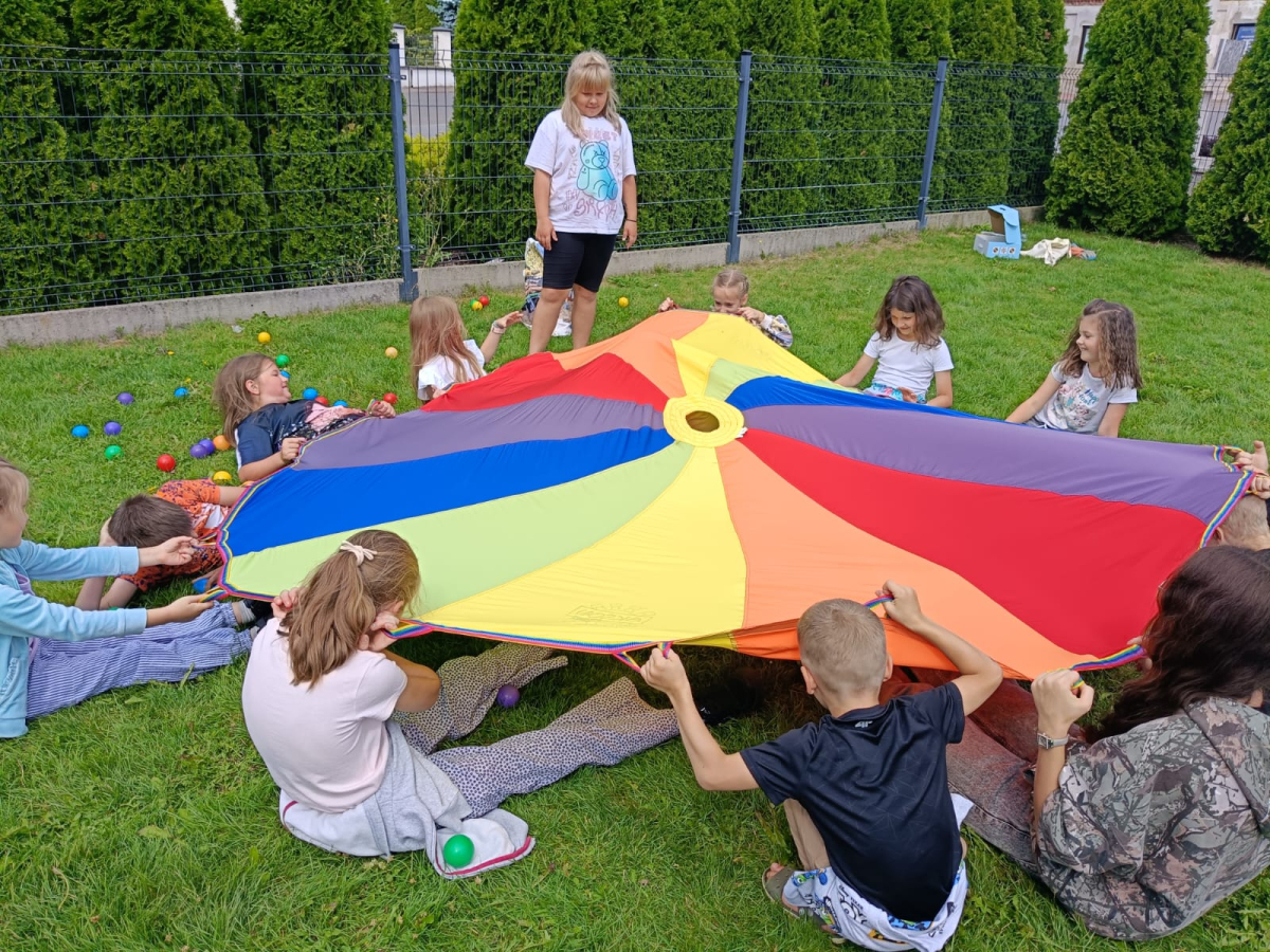 Pierwszy dzień sierpniowych zajęć wakacyjnych dla dzieci zaczęliśmy od zabaw integracyjnych chustą animacyjną, dzięki którym uczestnicy mogli się lepiej poznać. Tak spędziliśmy czas na świeżym powietrzu w sposób aktywny i radosny.
