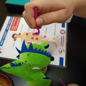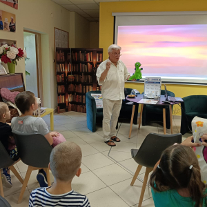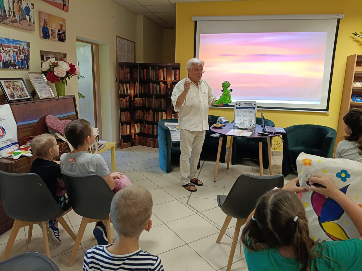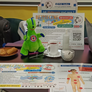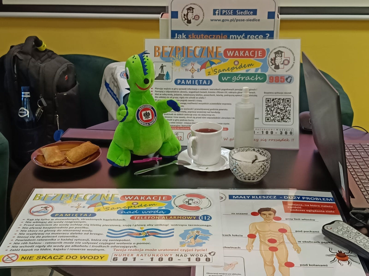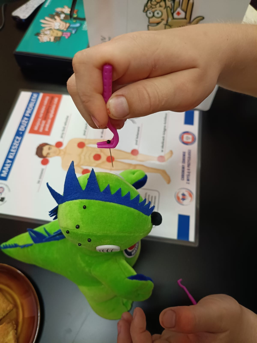 Bardzo ciekawe warsztaty poprowadził pan Jacek Rutkowski z sekcji Oświaty Zdrowotnej i Promocji Zdrowia Psse Siedlce. Dzieci wysłuchały wiele ciekawych porad odnośnie bezpieczeństwa i chętnie dzieliły się swoimi doświadczeniami i wiedzą. Poznały też zagrożenia, jakie niosą kleszcze i z chęcią uczyły się ich bezpiecznego usuwania. Wiedzą także, że po pomoc w usunięciu kleszcza można udać się do przychodni lekarskiej. Dużym zainteresowaniem cieszyło się doświadczenie o myciu rąk. Pan Jacek spryskiwał dłonie dzieci specjalnym płynem, którym trzeba było umyć ręce. Następnie w ultrafiolecie sprawdzana była dokładność ich mycia. Okazuje się, że to nie taka prosta sprawa. Dzieci szorowały rączki, a urządzenie pokazywało miejsca, które trzeba było jeszcze domyć.