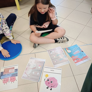 Po poczęstunku i odpoczynku dzieci poznały historię maciejki z "Bajki wiosennej", której historia uczy, że każdemu należy dać szansę i nie oceniać go po wyglądzie. Po zabawach integracyjnych dzieci wykonywały ćwiczenia stymulujące mózg. Niestety okazało się, że nie da się go przechytrzyć.