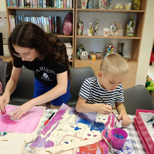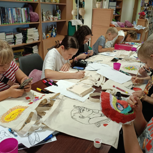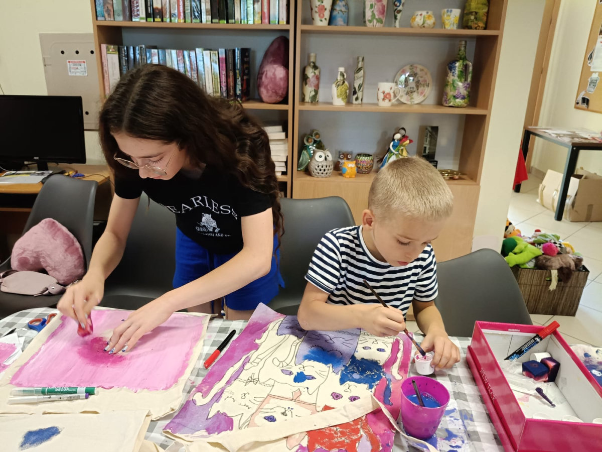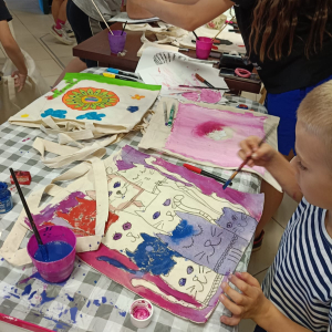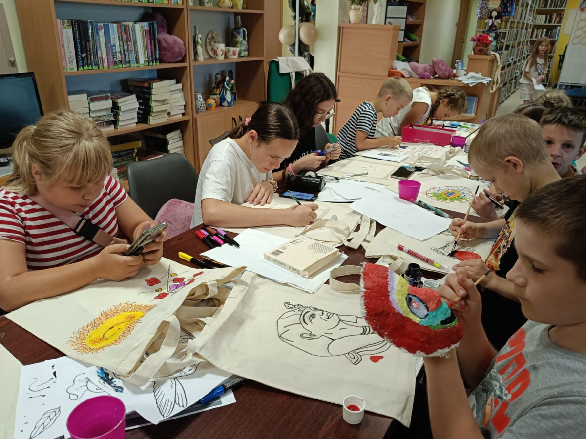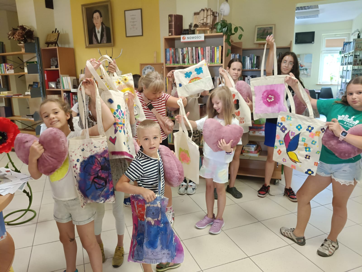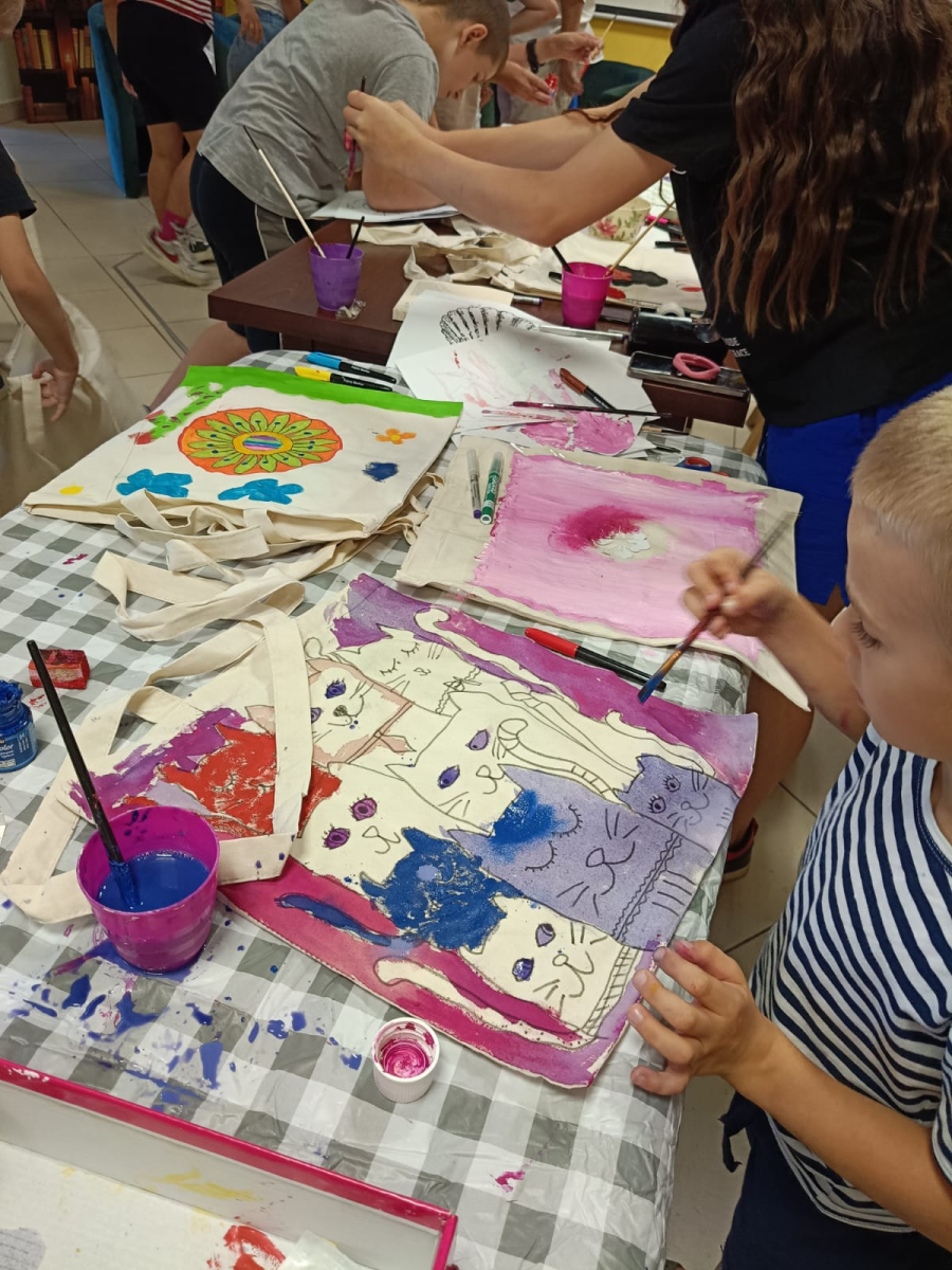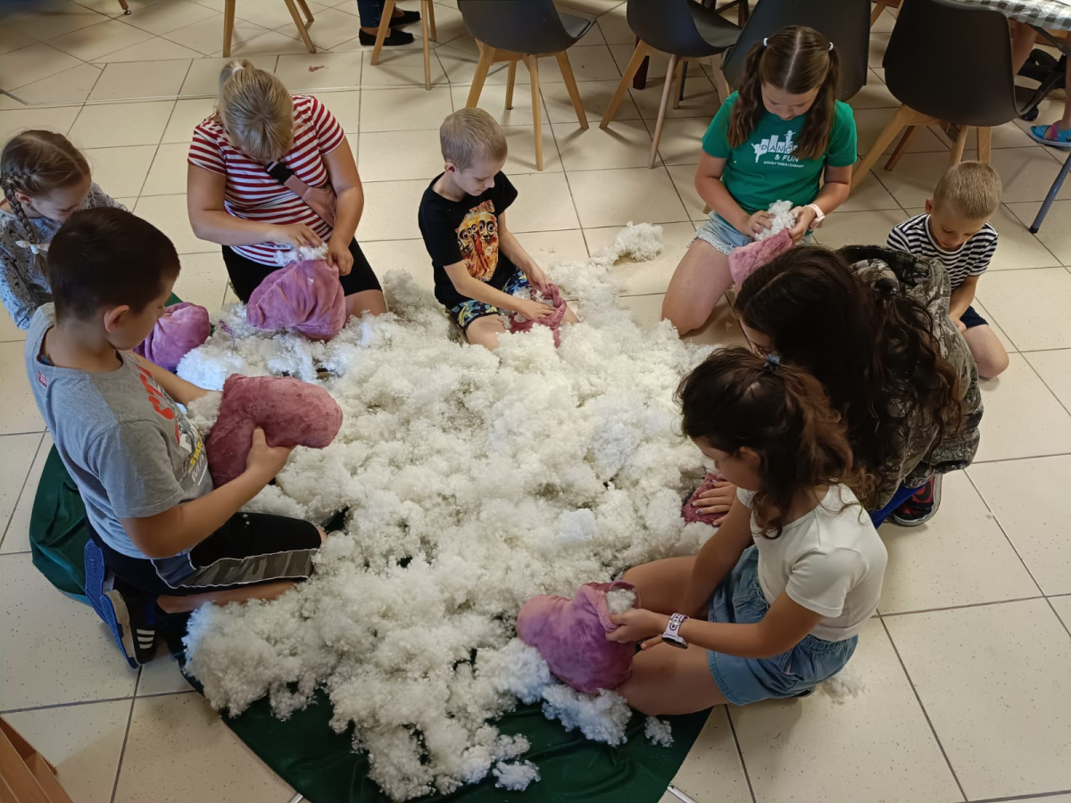 Ostatni dzień zajęć wakacyjnych za nami! Skończyliśmy szyć poduszki w kształcie serca, a stetoskopem próbowaliśmy poczuć rytm bicia swoich serduszek. Po zjedzeniu pysznej przekąski wzięliśmy się za malowanie toreb na zakupy lub... skarby z kończących się wakacji.