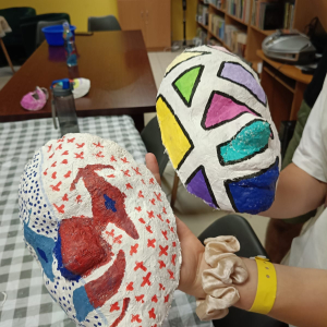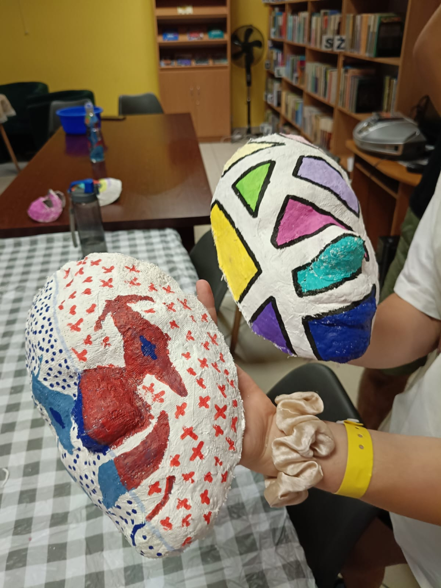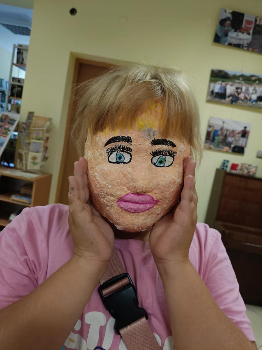 Gipsowy odlew buziek wysechł przez noc i można było go ozdobić. Gotowe prace przedstawiają kalejdoskop emocji, o których mówiliśmy w trakcie ostatnich dni. Jedne są wesołe, inne zamyślone, a nawet tajemnicze. Wszystkie ukryją nasze prawdziwe emocje, jeśli w danej chwili nie będziemy mieli ochoty ich pokazywać. Dzieci stworzyły maski, które z powodzeniem można zabrać na karnawał w Wenecji.