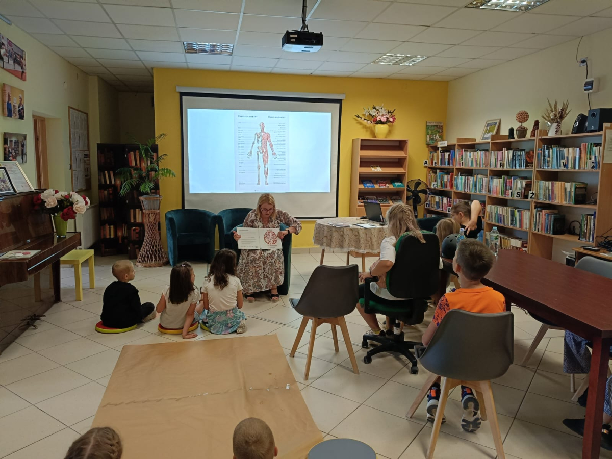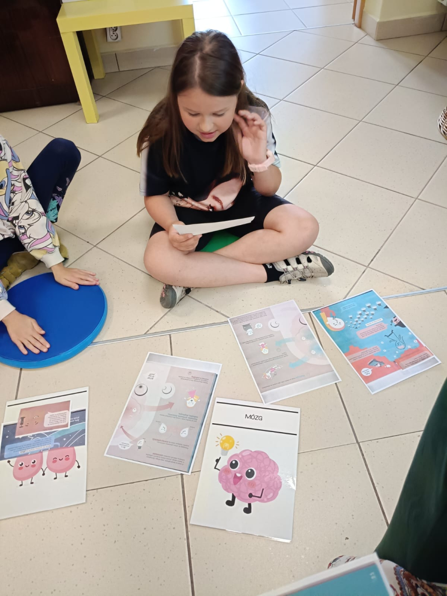 Po wysłuchaniu kłótni narządów dzieci odrysowywały na szarym papierze kontury ciała i naklejały narządy człowieka we właściwe miejsce. Zadanie poszło im bardzo dobrze i okazało się, że dzieci wiedzą, gdzie znajdują się poszczególne wewnętrzne części ciała człowieka.