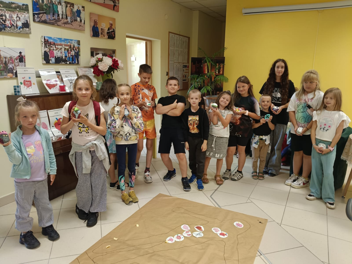 Drugiego dnia sierpniowych zajęć wakacyjnych dzieci wzięły udział w Grze Terenowej z Dreptusiem po Mordach, a podczas wykonywania zadań poznały wiele ciekawostek o Mordach. W różnych miejscach Mordów zostawiły też wykonane przez siebie kamyczki. Gdy ktoś je znajdzie, powinien zabrać je ze sobą i zostawić w innym miejscu podczas swojej podróży.