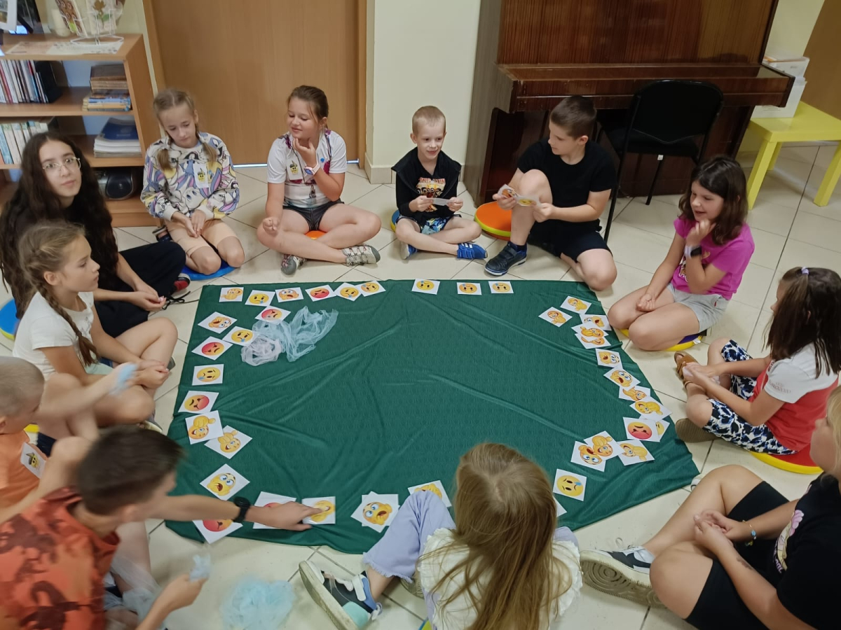 Trzeciego dnia zajęć wakacyjnych mieliśmy bardzo miłego gościa. Pani Ela Roszczak z Fundacja Pozytyw, w ramach zadania "Bezpieczny Dom - Edukacja i Profilaktyka Przeciw Pomocy" dofinansowanego ze środków Samorządu Województwa Mazowieckiego, poprowadziła z dziećmi warsztaty o emocjach - rozróżnianiu ich oraz sposobach radzenia sobie z nimi. Był czas na rozmowę oraz wyrażenie uczuć w formie plastycznej