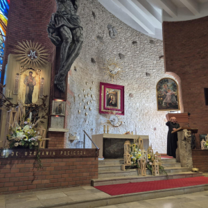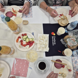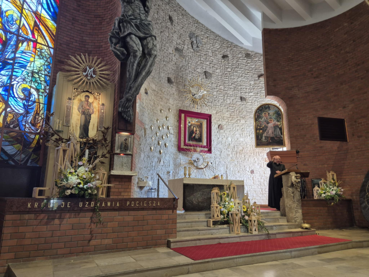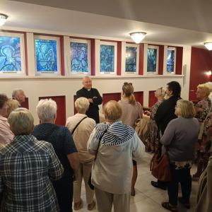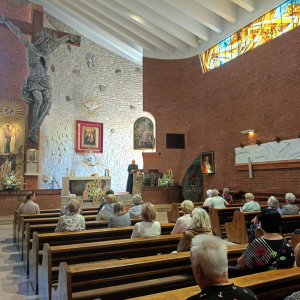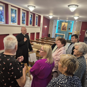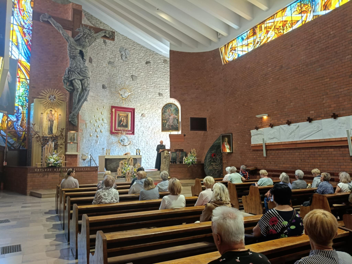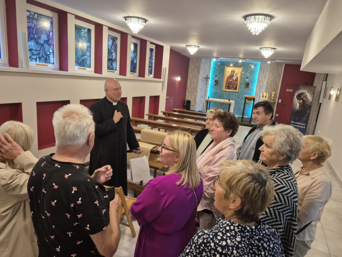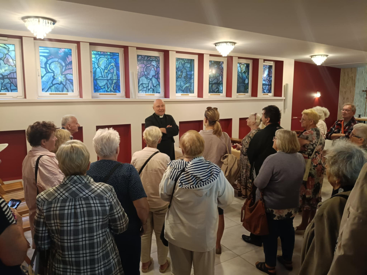 Oprócz integracji był także czas na modlitwę i przeżycia duchowe w miejscowym kościele Parafia Św. Józefa Robotnika - Wołyńce, którego niezwykłą i interesująca historię opowiedział proboszcz ksiądz Jacek Mucha. Nie zdawaliśmy sobie sprawy, że tak blisko nas jest kościół będący perłą architektury sakralnej z pięknymi obrazami: Patrona Parafii, Boga Ojca, Matki Bożej Przyczyny Naszej Radości, Matki Bożej Patronki Dobrej Śmierci w Kaplicy Dolnej i wielu innych. Ogromne wrażenie zrobiły na nas także monumentalna figura ukrzyżowanego Jezusa Chrystusa, kilkusetletnia figura Chrystusa Frasobliwego, największe w regionie okno witrażowe, relikwie Ojca Świętego Jana Pawła II oraz relikwie Świętych Pastuszków z Fatimy. Jeszcze raz dziękujemy księdzu proboszczowi za możliwość obejrzenia kościoła, wysłuchania jego dziejów oraz wspólną modlitwę. Dziękujemy Danie Wspólnych Chwil z Fundacją Biedronki za możliwość udziału w programie, którego efektem są cudowne spotkania i możliwość poznania nowych miejsc oraz ludzi. Dziękujemy Radzie Seniorów Gminy Mordy, radnej Miasto i Gmina Mordy pani Monice Stokowskiej, dyrektor biblioteki w Mordach Marlenie Soszyńskiej, słuchaczom UTW w Mordach oraz paniom z KGW Mordy za organizację i przygotowanie dzisiejszego spotkania, a Fundacja Biedronki za możliwość udziału w tak pięknej inicjatywie, jaką jest Danie Wspólnych Chwil z Fundacją Biedronki, dzięki której możemy spędzać miłe chwile przy wspólnym stole suto zastawionym zdrowymi smakołykami.
