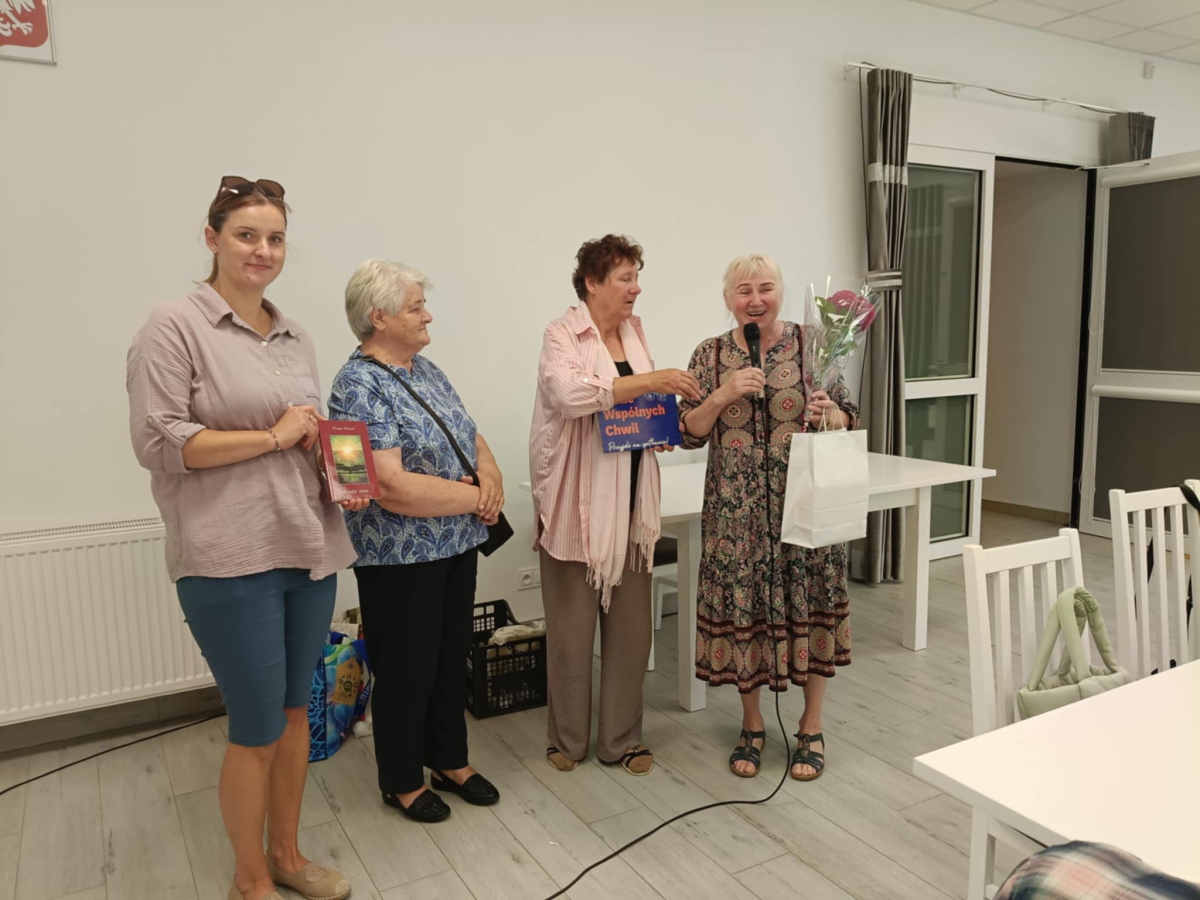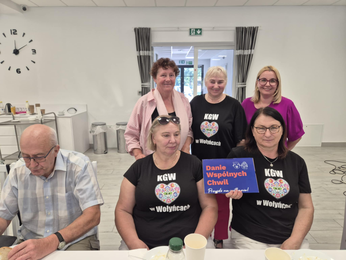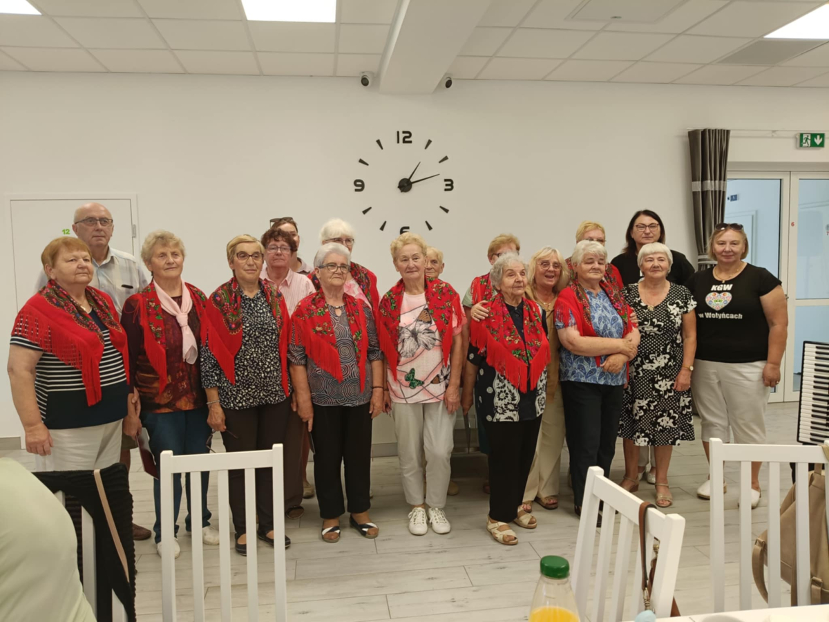 Seniorzy z Mordów integrowali się z Koło Gospodyń Wiejskich w Wołyńcach, które również bierze udział w Programie "Danie Wspólnych Chwil" z Fundacją Biedronki. To wszystko było możliwe dzięki przyjaźni Miejsko-Gminna Biblioteka Publiczna im. Ireny Ostaszyk z bibliotekami na terenie powiatu siedleckiego. Dzisiaj odwiedziliśmy Filię Biblioteczną w Wołyńcach, która jest częścią Biblioteki Gminy Siedlce. Prowadzi ją niezwykła bibliotekarka, poetka, działaczka społeczna, sołtys Wołyniec i twórczyni rękodzieła - Maria Woźniak. Ta serdeczna i ciepła kobietka o pięknym sercu jest także Kawalerem Orderu Uśmiechu i wraz z przyjaciółmi z KGW Wołyńce z otwartymi ramionami powitała nas w progach pięknej świetlicy w Wołyńcach. Przyjaciele Marysi Woźniak są także przyjaciółmi seniorów z Mordów i połączeni są przeróżnymi więzami - sąsiedzkimi, rodzinnymi oraz gminno-parafialnymi.