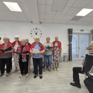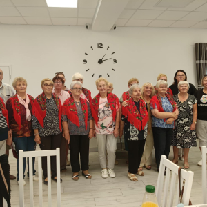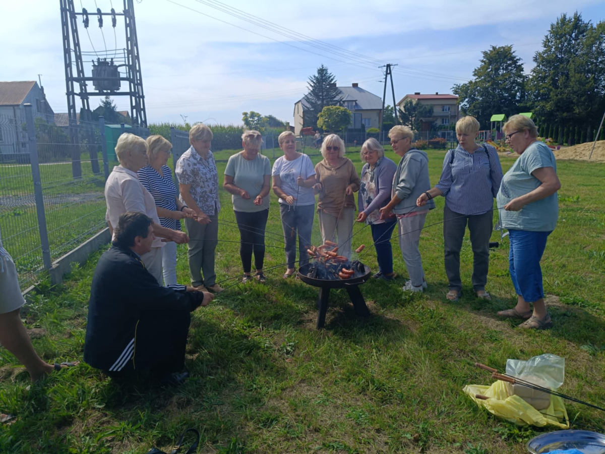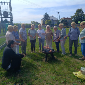 Był czas na rozmowy i integrację przy wspólnym stole, pieczenie kiełbasek na ognisku oraz mały koncert Zespołu Ludowego "Podlasianki", któremu akompaniował na akordeonie pan Andrzej Kędziora. Twórczyni ludowa Krystyna Halina Noszczak wręczyła Marysi Woźniak wykonaną przez siebie piwonię z bibuły, którą Marysia zachwycała się podczas szkoleń w Miejsko-Gminna Biblioteka Publiczna im. Ireny Ostaszyk. Pani Krysia oraz pani Ela Trębicka obiecały, że spotkają się z KGW Wołyńce na wspólnych warsztatach rękodzielniczych i wymienią się swoimi umiejętnościami.