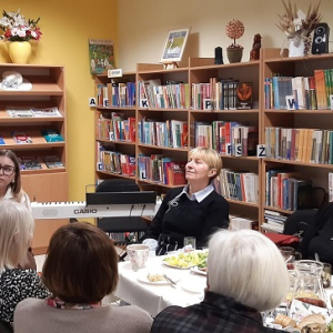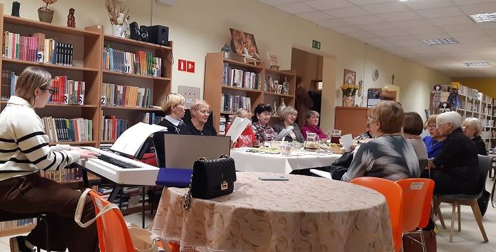 Spotkanie poprowadziła Agnieszka Chojecka – obdarzona niezwykle pięknym głosem wokalistka, która specjalnie na tę okazję przygotowała zestaw poruszających pieśni o miłości do ojczyzny. Seniorzy z radością włączali się we wspólne śpiewanie, tworząc ciepłą, pełną wzruszeń atmosferę, którą dopełnił akompaniament pianina i poczęstunek złożony z tradycyjnych polskich potraw.