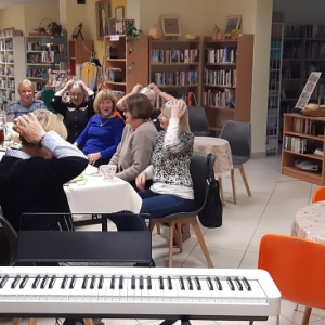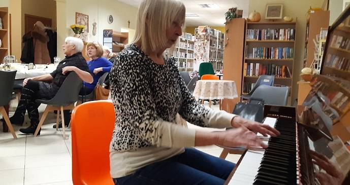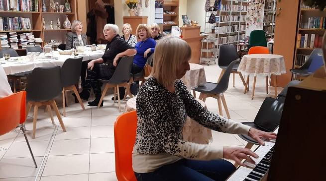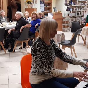 Na zakończenie przy pianinie usiadła nasza Zosia Werle - kierownik Zespołu Kameralnego UTW w Mordach i wspólne śpiewanie było kontynuowane.