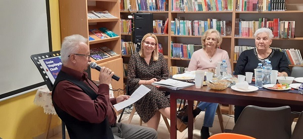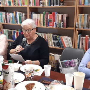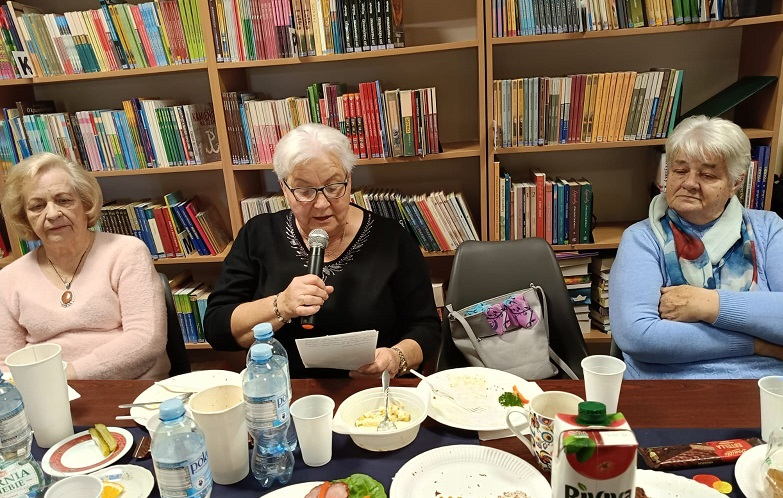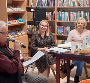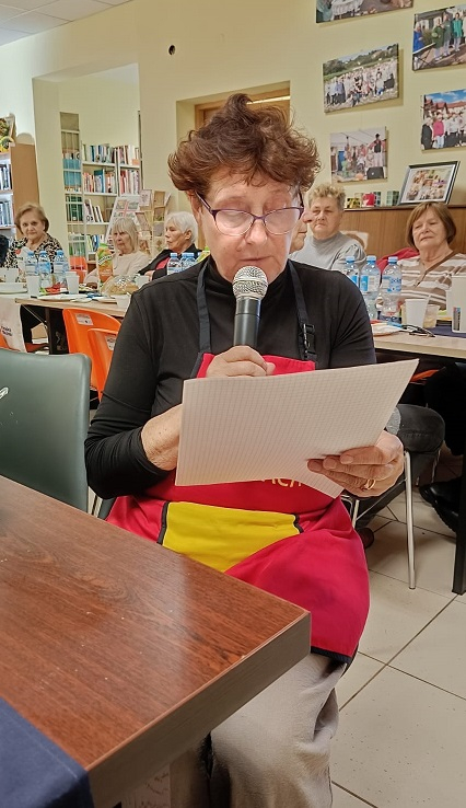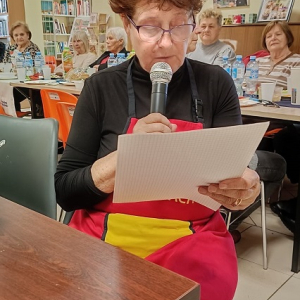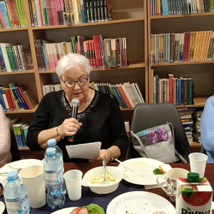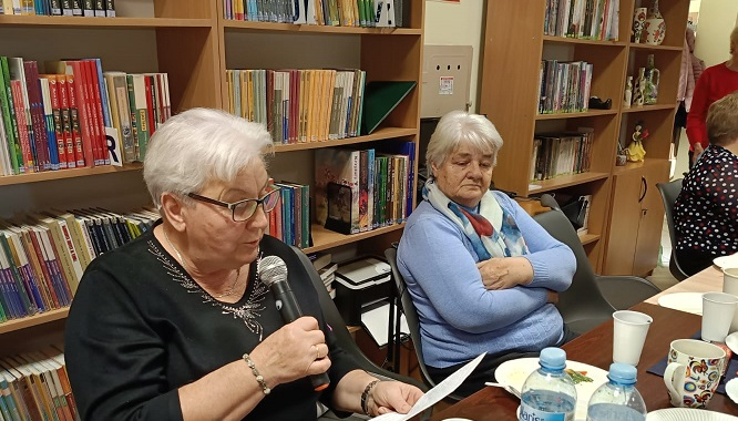 Po poczęstunku sfinansowanym przez Fundację Biedronki i przygotowanym przez panie z Koła Gospodyń Wiejskich w Mordach, w miłej, domowej atmosferze, przy zapachu smakołyków, znów zrobiło się literacko – czytaliśmy prace nadesłane na konkurs „Wspomnienia jak pajda chleba”, dzieląc się swoimi historiami i emocjami, które łączą seniorów we wspólnych wspomnieniach. Usłyszeliśmy literackie i poetyckie wspomnienia z dzieciństwa Teresy Jawiczuk, Haliny Grochowskiej, Elżbiety Radlińskiej-Trębickiej, Ewy Andrzejewskiej, Marianny Pawłowskiej i Włodzimierza Markowicza.