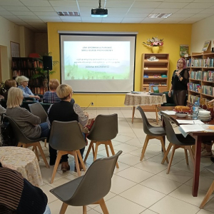 5 listopada br. w naszej bibliotece odbyło się spotkanie dla seniorów zatytułowane „Jak upermakulturowić swój przydomowy ogród?”, które poprowadziła Joanna Haczkiewicz z Zielonej Farmy - Mordy .