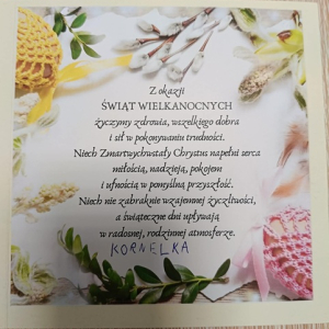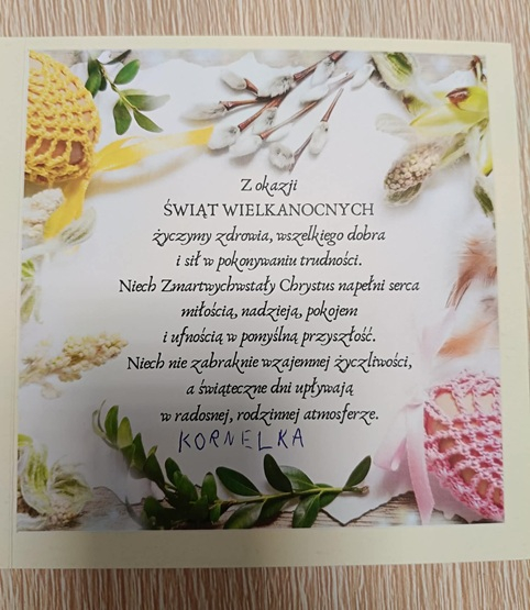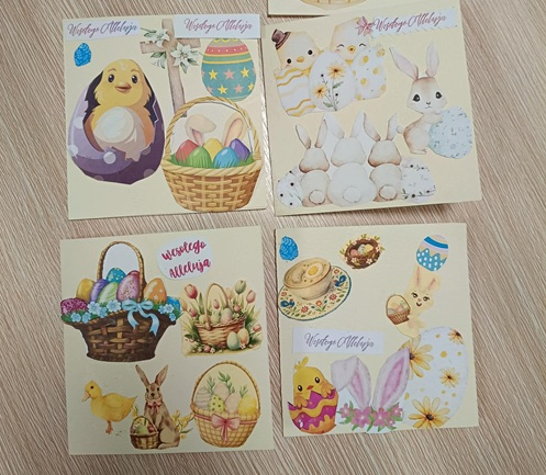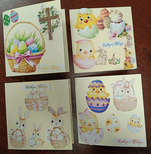 To już naprawdę ostatni moment, by wysłać wielkanocne kartki i sprawić bliskim odrobinę radości. Dzieci o tym pamiętały i z ogromnym zaangażowaniem przygotowały wyjątkowe, własnoręcznie wykonane kartki świąteczne. Każda z nich jest niepowtarzalna – ozdobiona barwnymi, wielkanocnymi motywami, takimi jak pisanki, kurczaczki czy wiosenne kwiaty. W ich wykonanie mali artyści włożyli nie tylko pracę, ale przede wszystkim dziecięcą radość tworzenia. W środku kartek znalazły się piękne, szczere życzenia, płynące prosto z serca.
