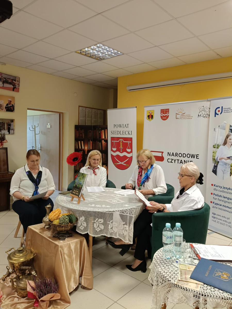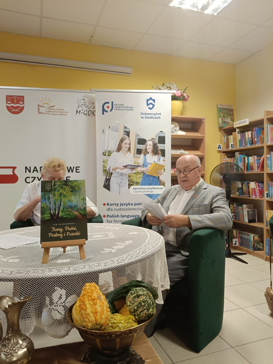 W tym roku zgromadziliśmy się w bibliotece w Mordach, by czytać fraszki, pieśni i treny Jana Kochanowskiego. Wydarzenie poprowadziła dyrektor Instytutu Języka Polskiego i Kultury Polskiej dr hab. Beata Walęciuk-Dejneka – profesor Uniwersytetu w Siedlcach oraz dyrektor biblioteki Marlena Soszyńska. Uczestników Narodowego Czytania powitała Wicestarosta Siedlecki Małgorzata Cepek, Zastępca Przewodniczącego Rady Powiatu Siedleckiego Marek Gorzała oraz Burmistrz Miasta i Gminy Mordy Łukasz Wawryniuk, którzy przeczytali wybrane fraszki i pieśni. Wśród lektorów byli także Uczniowie Szkoły Podstawowej im. Waleriana Łukasińskiego w Mordach, dyrektor szkoły Alina Wołosz z polonistką Katarzyną Marczak oraz uczniowie Szkoły Podstawowej im. Ks. Kanonika Kazimierza Dymitrowicza w Radzikowie Wielkim z dyrektor Wioletą Stefaniuk. Wybrane poezje czytały także przedstawicielki Zespołu Ludowego „Podlasianki” oraz Zespołu Kameralnego UTW w Mordach, zastępca dyrektora M-GOK w Mordach Emilia Biarda, pisarka Halina Grochowska, Gustaw Dmowski, Mariusz Stangreciuk oraz Agnieszka Lipińska – uczennica II LO im. Św. Królowej Jadwigi w Siedlcach.