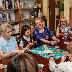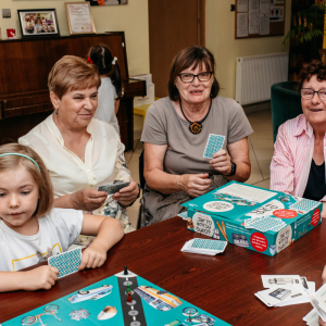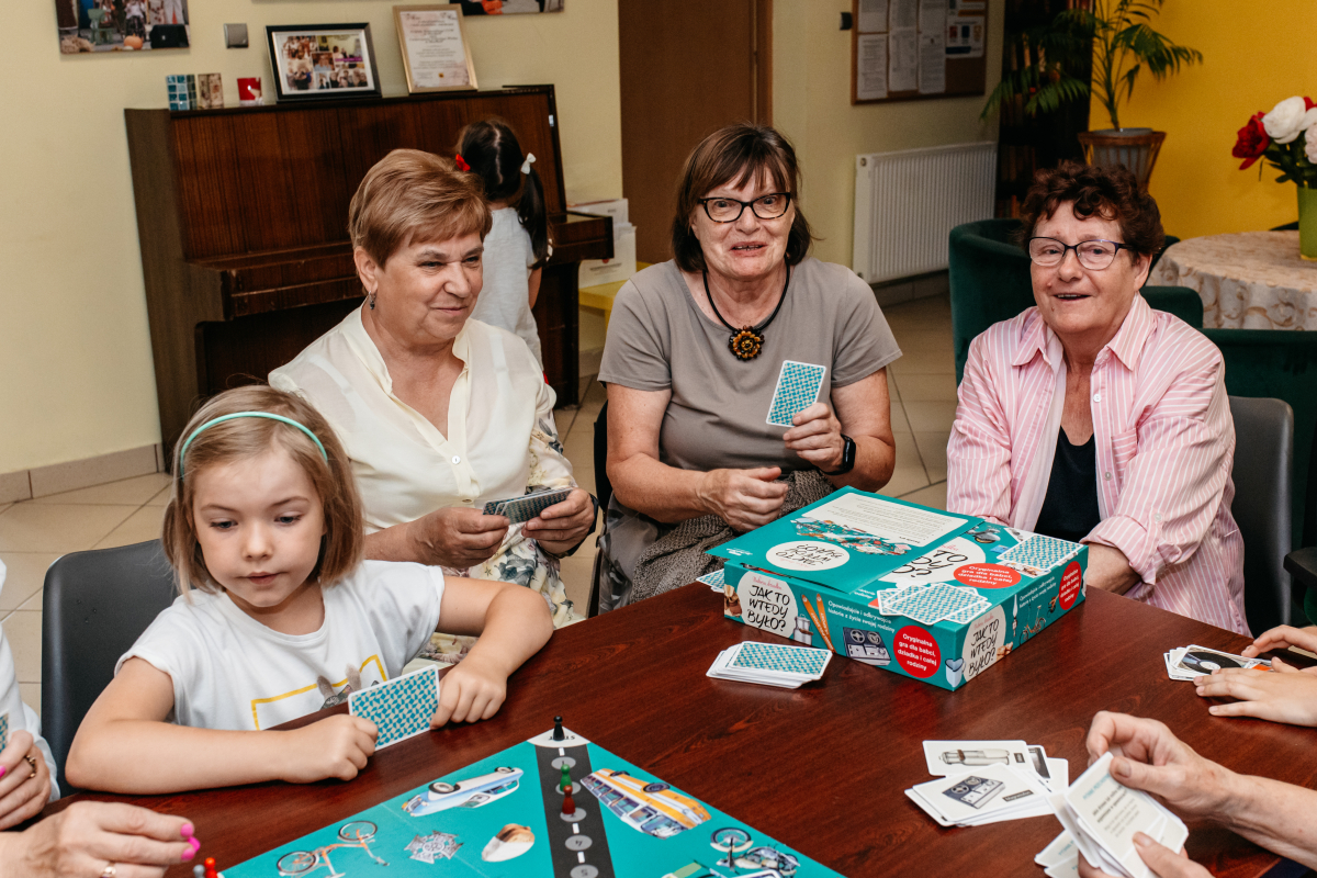 Pierwsze spotkanie w ramach zadania odbyło się w środę 23 lipca i odbyło się pod hasłem "Retro wspomnienia - międzypokoleniowa sesja zdjęciowa i gry planszowe". W klimatycznej scenerii zieleni i rekwizytach z dawnych lat fotograf Joanna Daniluk zrobiła piękne fotografie, do których seniorzy założyli piękne stroje. Niektórzy przyszli ze swoimi wnukami, dzięki czemu będą mieli rodzinne fotografie. Po sesji wszyscy wyśmienicie bawili się podczas gry w "Babciu, dziadku jak to wtedy było?". Uruchomiła ona wspomnienia i była powodem śmiechu oraz wzruszeń.
