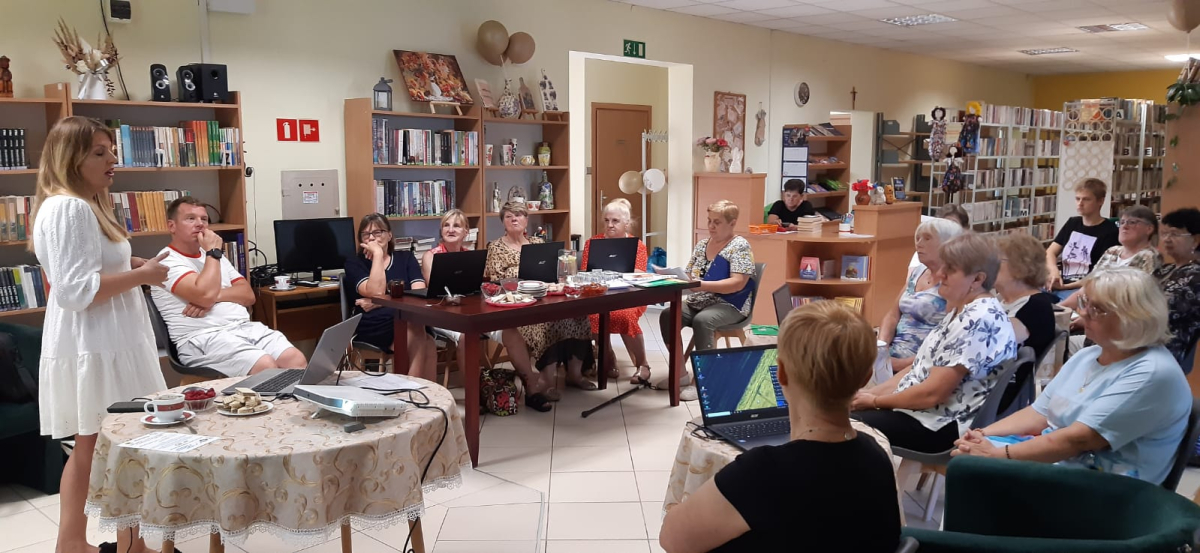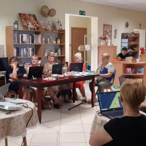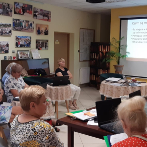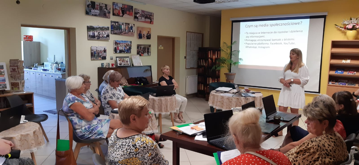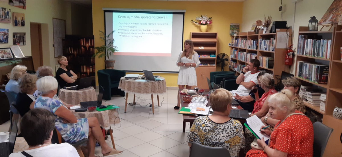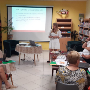 12 sierpnia seniorzy wzięli udział w zajęciach z obsługi mediów społecznościowych, które poprowadziła Aleksandra Ziółek w ramach zadania pn. "Stawiamy na seniorów - aktywność, integracja i wsparcie dla osób starszych" realizowanego przez Stowarzyszenie Społeczno - Oświatowe Gminy Międzyrzec ze środków budżetu Województwa Mazowieckiego.