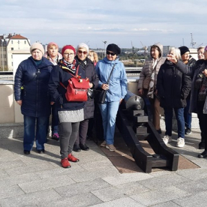 Słuchacze UTW wdrapali się też na mierzącą 56 metrów wieżę Katedry św. Jakuba. Widok był przepiękny, ale morza nie było widać. Nie zabrakło też wizyty na Zamku Książąt Pomorskich, zwiedzania eleganckiej Filharmonii, spaceru po nabrzeżu naprzeciw stoczni i oczywiście poznania historii miasta z przewodnikiem.