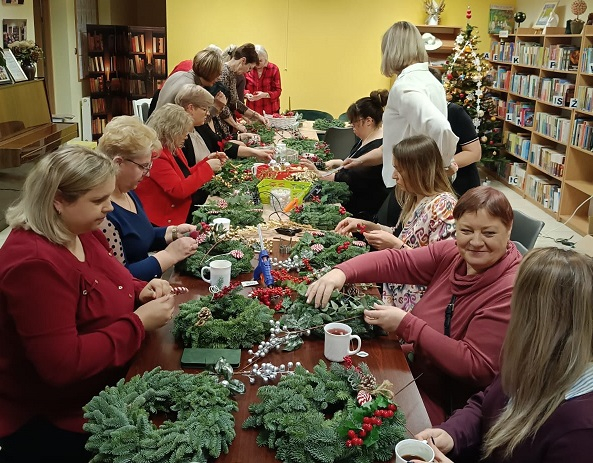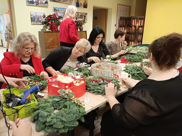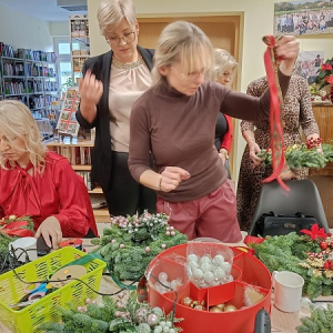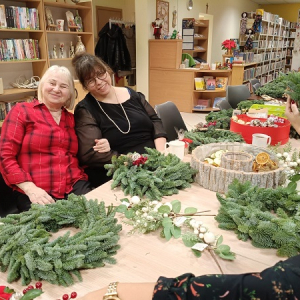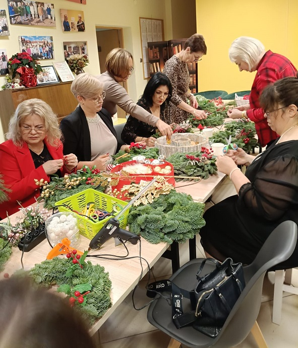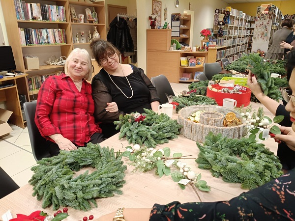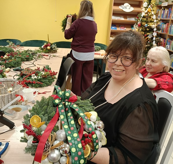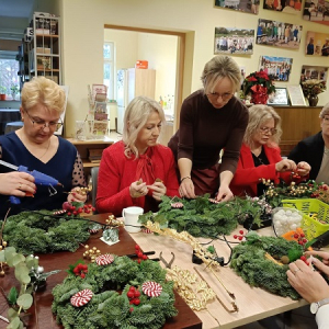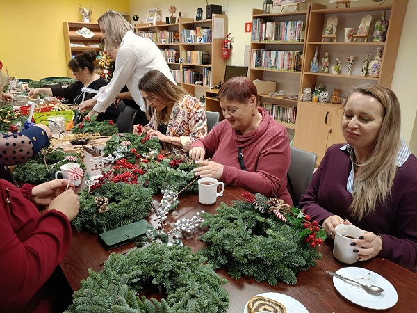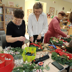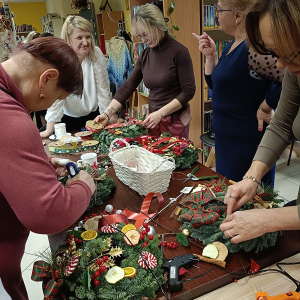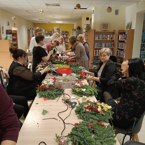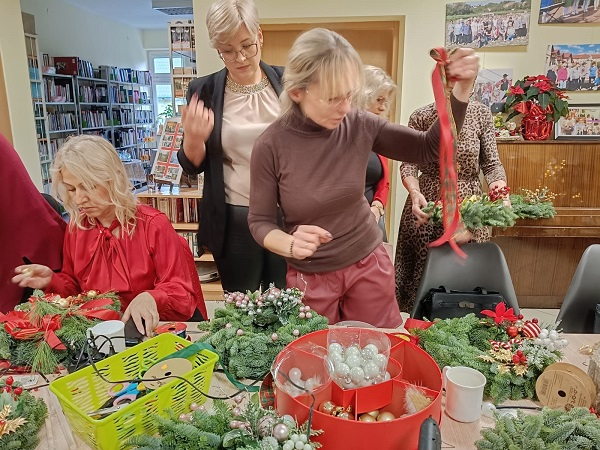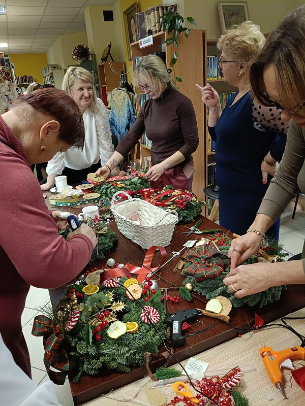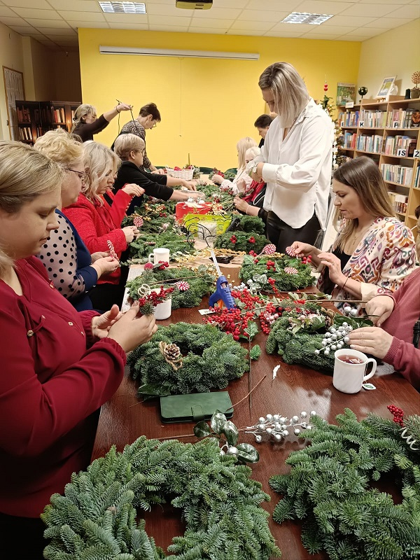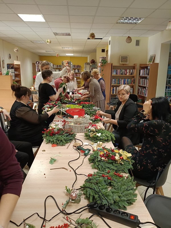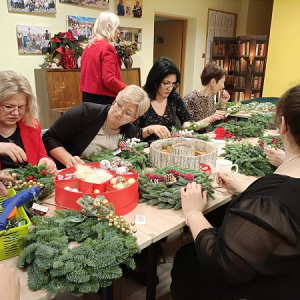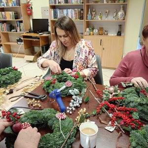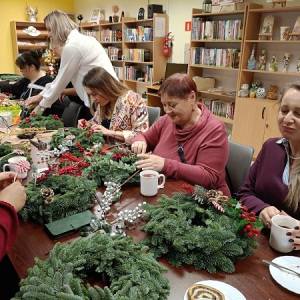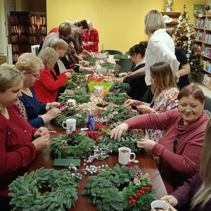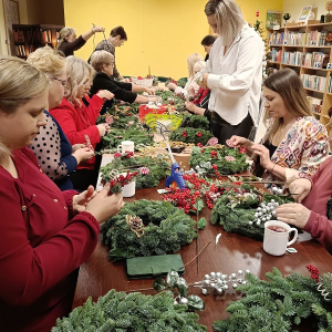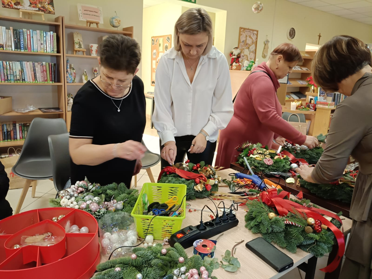 11 grudnia bibliotekarki z powiatu siedleckiego spotkały się, by wspólnie wejść w magiczny czas świątecznych przygotowań. Tegoroczne spotkanie rozpoczęłyśmy od wyjątkowych warsztatów tworzenia bożonarodzeniowych wieńców na drzwi, które poprowadziła niezwykle utalentowana Aneta z Kwiaciarni Kwiatopasja w Mordach. Pod jej czujnym okiem powstały małe dzieła sztuki – tak piękne, że trudno oderwać od nich wzrok.