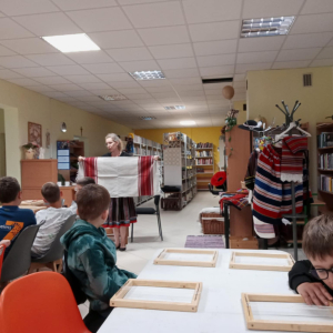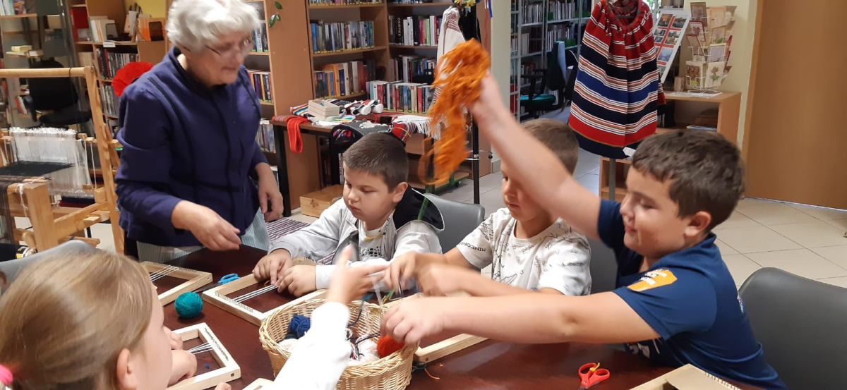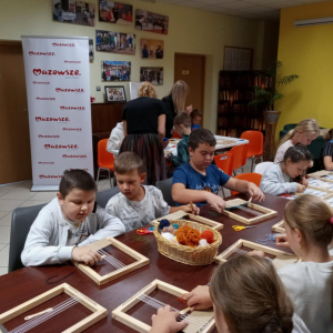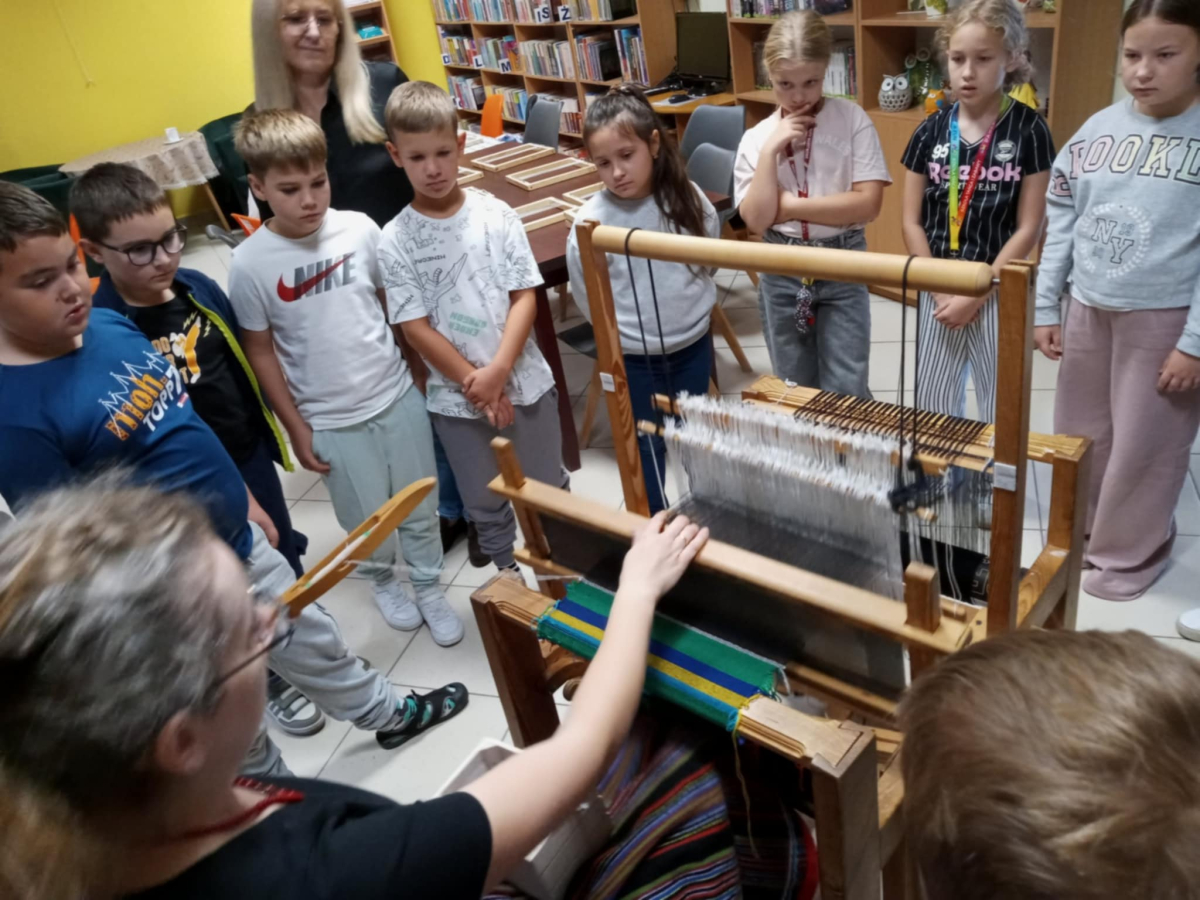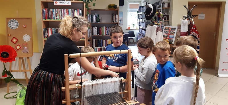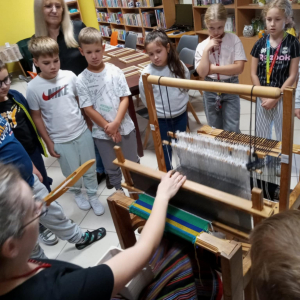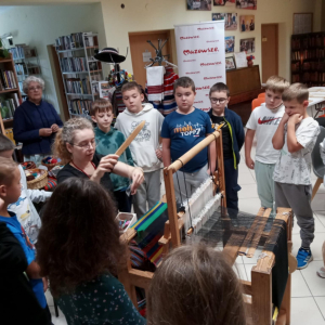 Warsztaty tkackie były jednym z wydarzeń organizowanych w ramach wydarzenia "Razem w korowodzie - folk w gminnym ogrodzie". Mistrzyni tkactwa Magdalena Papakul wraz z córką Zofią Kierylak, które w Mordach mają swoją Pracownię Tkacką "Krajka", poprowadziły fantastyczne warsztaty dla dzieci. Ich małe sprytne rączki z niewielką pomocą utkały na ramkach własne, kolorowe zakładki do książek, a na krosnach powstawał podlaski pasiak. Każdy mógł spróbować utkać czółenkiem jeden splot.