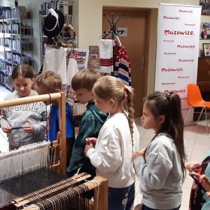 Warsztaty tkackie odbyły się w ramach wydarzenia "Razem w korowodzie - folk w gminnym ogrodzie", ktorego partnerem jest Samorząd Województwa Mazowieckiego.