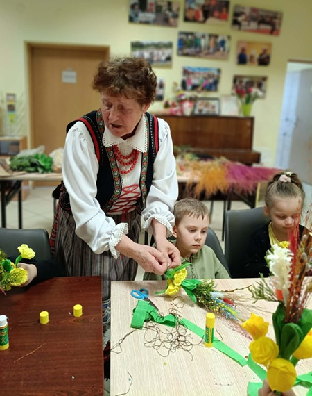 Nad przebiegiem warsztatów czuwała niezastąpiona Elżbieta Radlińska-Trębicka z Koła Gospodyń Wiejskich w Mordach. W okresie wielkanocnym, wspólnie z mistrzynią bibułkarstwa panią Krystyną Noszczak, tworzy ona tysiące kwiatów wykorzystywanych do zdobienia palemek. Dzięki ich zaangażowaniu i pasji tradycje naszego regionu są przekazywane młodszemu pokoleniu oraz pielęgnowane podczas uroczystości kościelnych i państwowych.