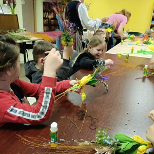 W kolejnych warsztatach wicia palemek wzięły udział "Pszczółki" z Przedszkola Samorządowego w Mordach, które z pomocą pań uwiły piękne dzieła. Kolorowe kwiaty z bibuły, barwione proso i suszone trawy, zielone gałązki bukszpanu i barwinka sprawiły, że każda praca zachwyca swoją oryginalnością i bogactwem detali. W Niedzielę Palmową z pewnością nie znajdziemy dwóch identycznych palemek.