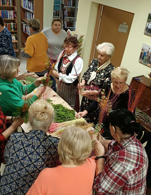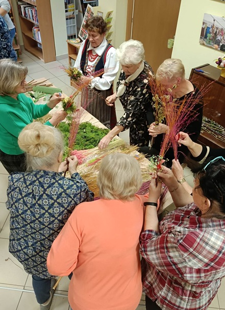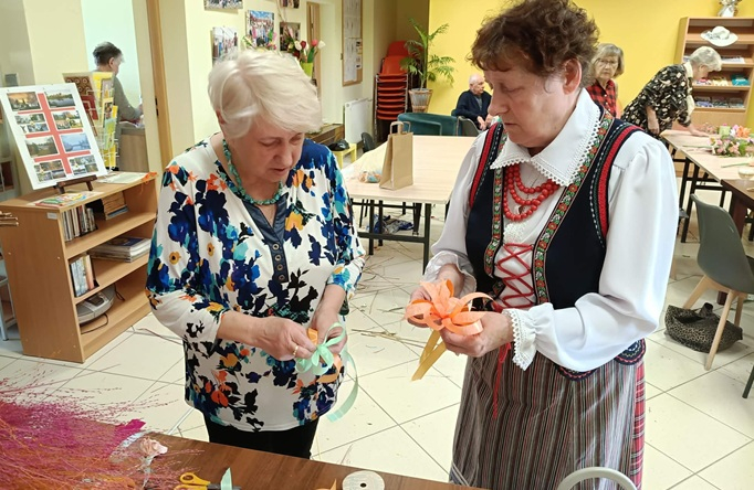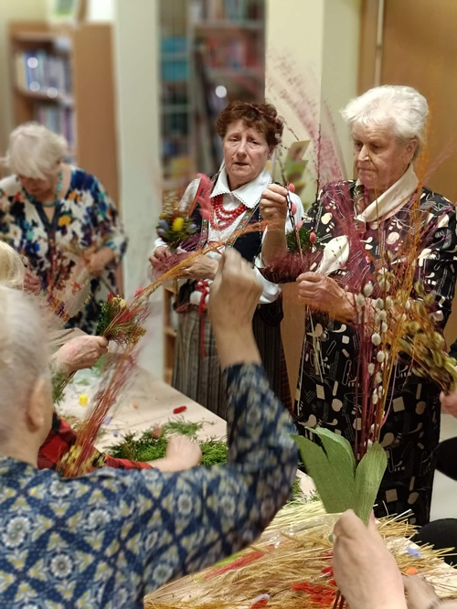 Słuchacze Uniwersytetu Trzeciego Wieku w Mordach z entuzjazmem wzięli udział w warsztatach rękodzielniczych, podczas których powstały wyjątkowe palemki wielkanocne. W miłej, pełnej życzliwości atmosferze uczestnicy z zaangażowaniem tworzyli barwne kompozycje z bibułowych kwiatów, suszonych traw, bukszpanu i innych naturalnych ozdób. Każda palemka stała się niepowtarzalnym dziełem, odzwierciedlającym kreatywność i wrażliwość swoich twórców.