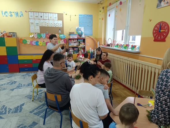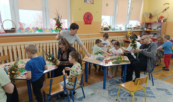 Przed Świętami wieklanocnymi w Szkole Podstawowej im. Ks. Kanonika Kazimierza Dymitrowicza w Radzikowie Wielkim, pani Jadzia Kulikowska z Filii Bibliotecznej w Radzikowie prowadziła rodzinne warsztaty wicia palm wielkanocnych oraz malowania pisanek wyciętych ze sklejki.