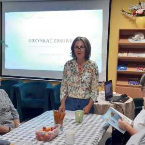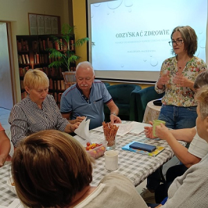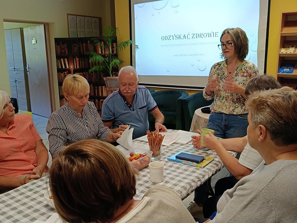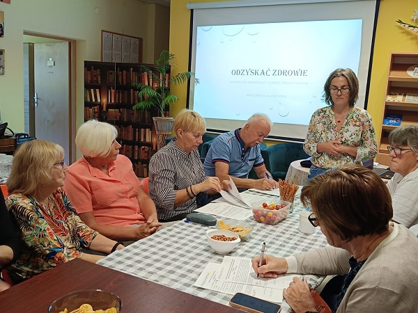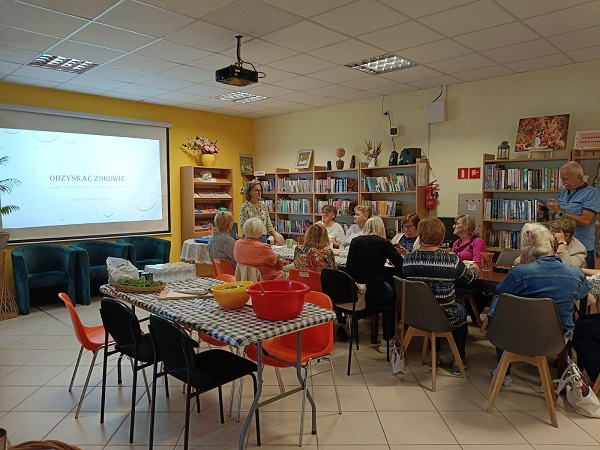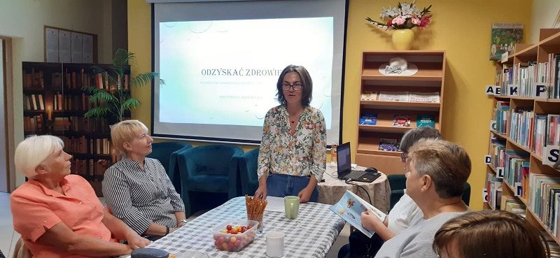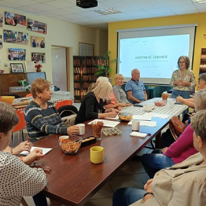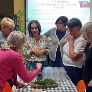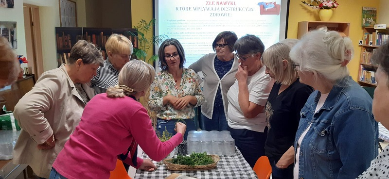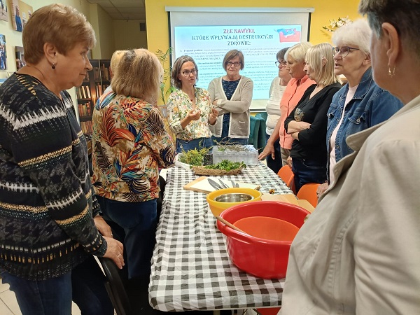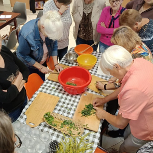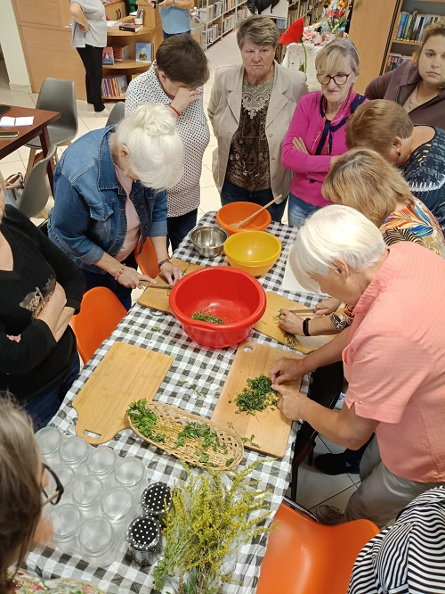 Słuchacze zdobyli mnóstwo ciekawych informacji o roślinach, ziołach, sposobach na zachowanie zdrowia i innych ciekawostkach, a na koniec zrobili sól ziołową, której zapach roznosił się po bibliotece.