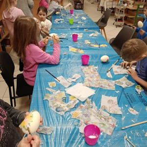 Zajęcia nie tylko wprowadziły uczniów w świąteczny nastrój, ale również pozwoliły rozwijać zdolności manualne, cierpliwość oraz wyobraźnię. Efekty ich pracy z pewnością staną się wyjątkową dekoracją wielkanocną i powodem do dumy dla młodych artystów.