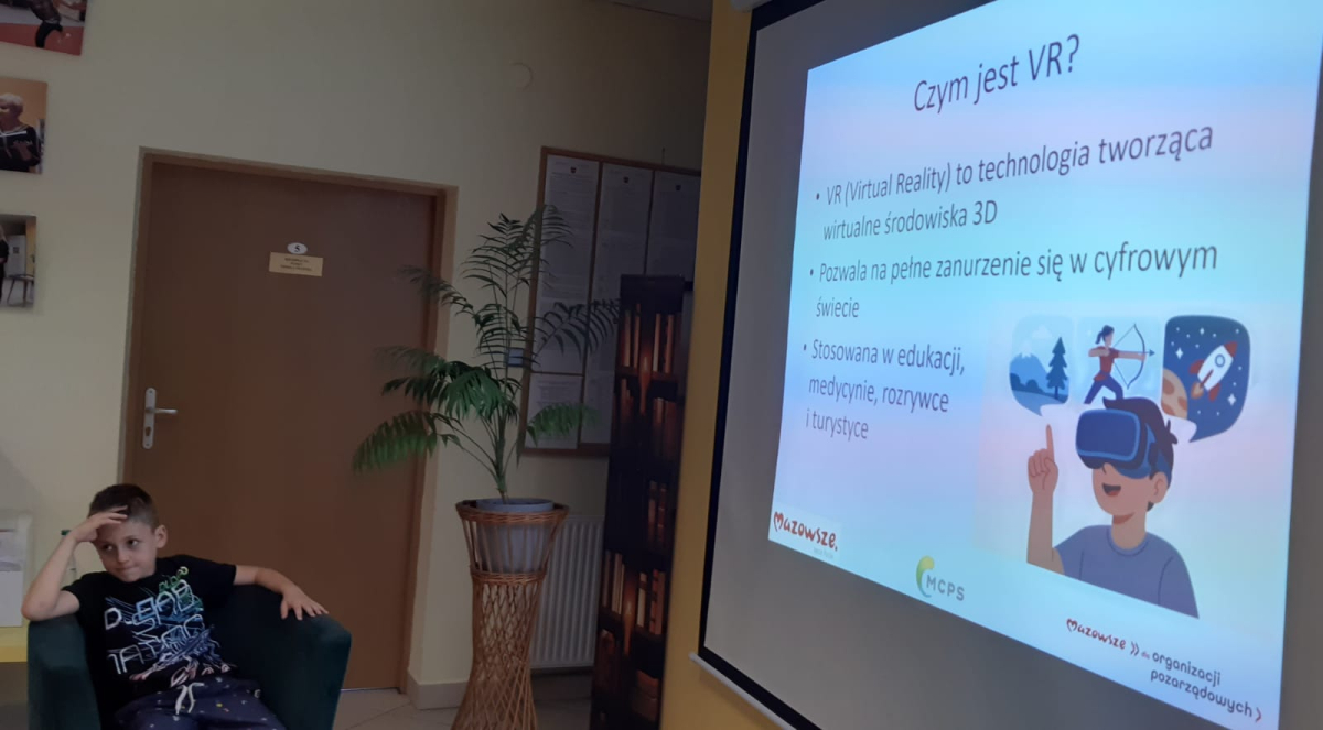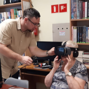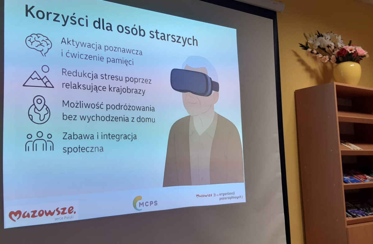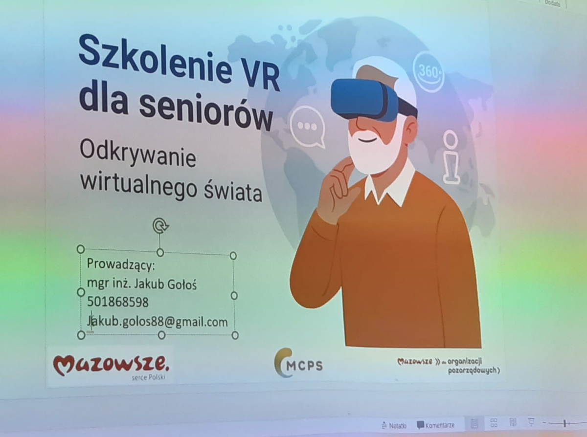 13 sierpnia odbyły się warsztaty "Wirtualne podróże - zajęcia z wykorzystaniem technologii VR", które poprowadził Jakub Gołoś w ramach zadania pn. "Stawiamy na seniorów - aktywność, integracja i wsparcie dla osób starszych" realizowanego przez Stowarzyszenie Społeczno - Oświatowe Gminy Międzyrzec ze środków budżetu Województwa Mazowieckiego